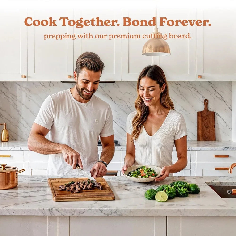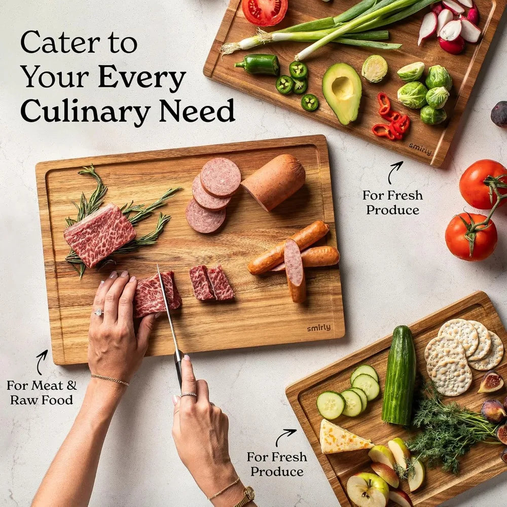 Elevate your kitchen with our Acacia Wood Cutting Board Gift Set, crafted for convenience and durability. This set features three stylish boards with non-slip surfaces and ergonomic handles, combining functionality with elegant design. Made from premium acacia wood, prized for its beautiful grain and strength, these boards are easy to clean and built to last. The included holder keeps everything organized and within reach, helping you maintain a neat kitchen. Perfect for meal prep or entertaining, use these versatile boards as serving platters or charcuterie trays to impress your guests.