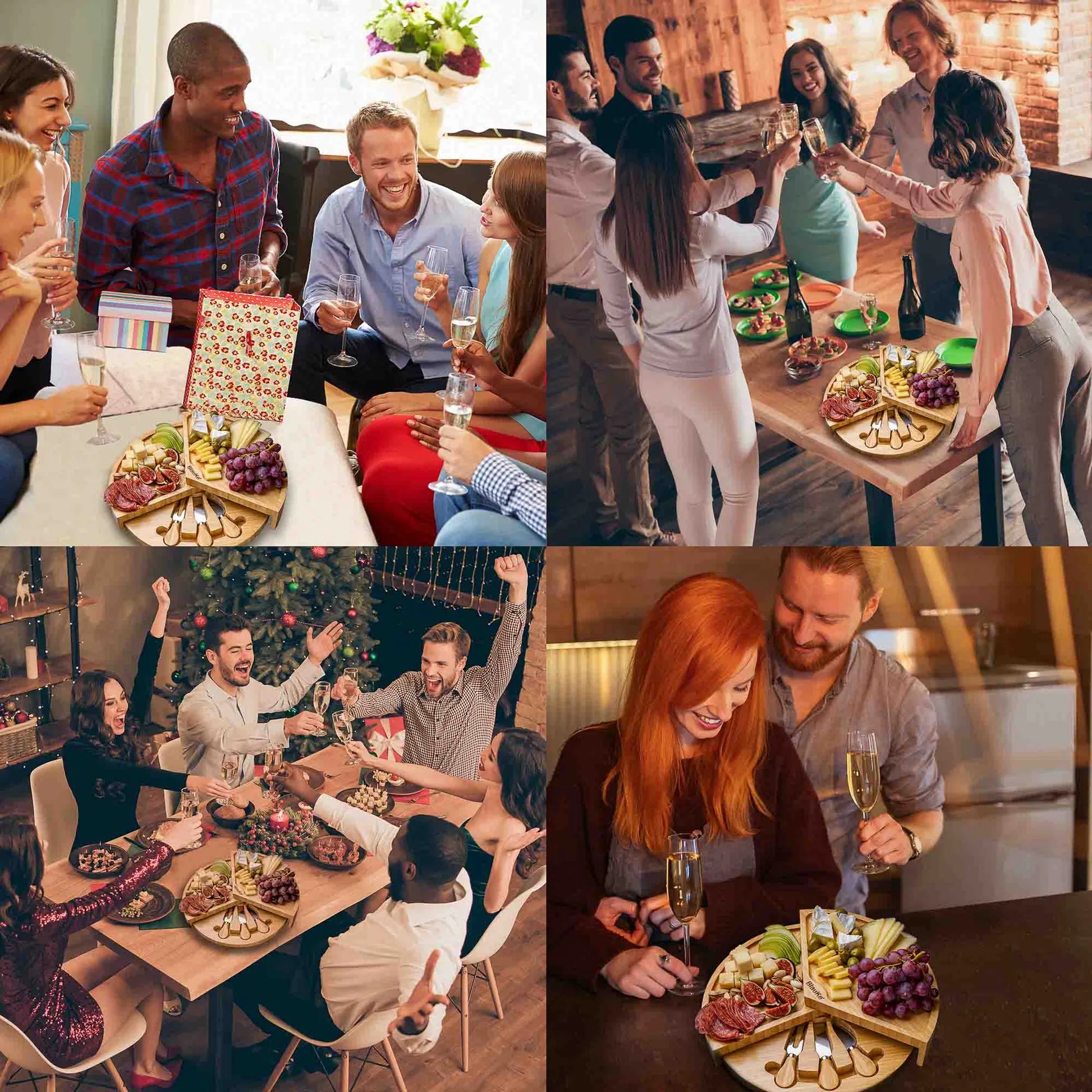 - This 14-inch round bamboo cheese board and knife set make a unique presentation that your guests wont soon forget. It serves 2-3 people in style, and it's foldable for easy and convenient storage.