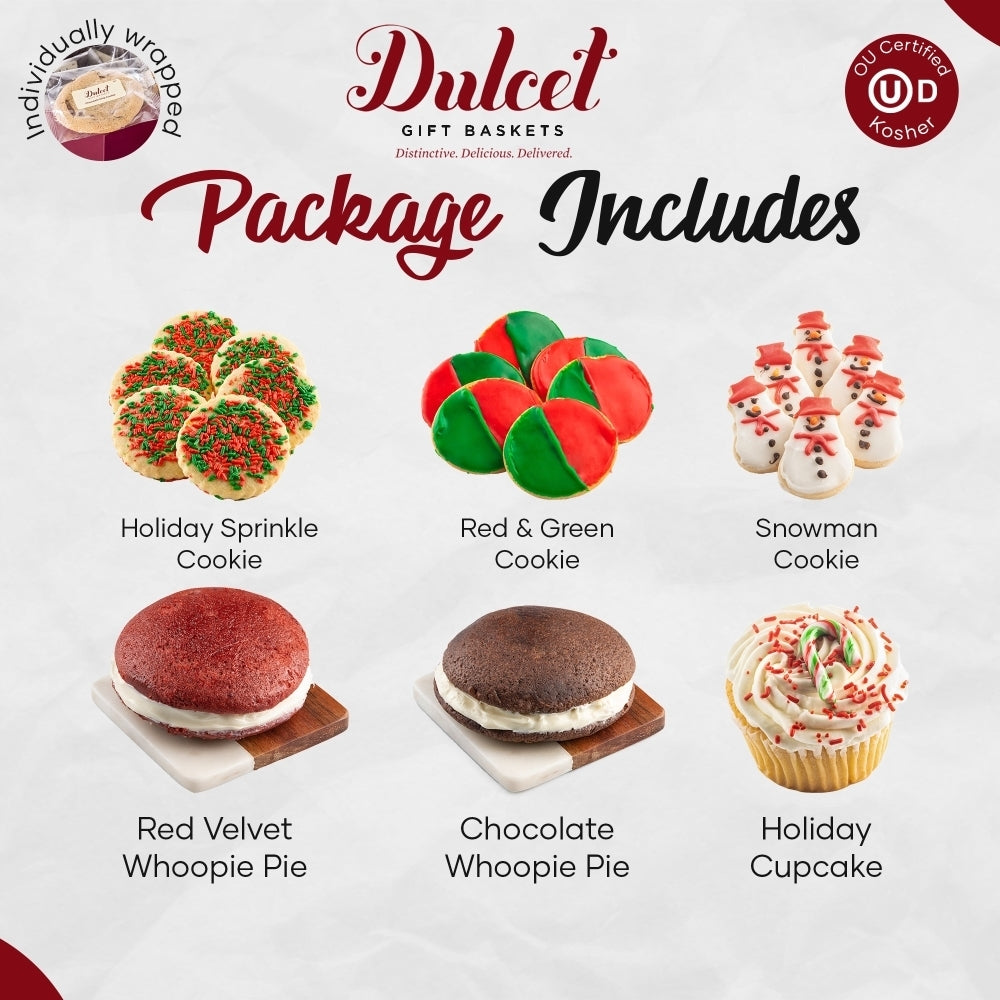 Because we strive to bring only the freshest and tastiest baked goods, every pastry inside this collection is separately wrapped up. Inside the tissue-wrapped cardboard box, you will find some moist whoopie pies, buttery rugelach, and other decadent treats tucked inside.