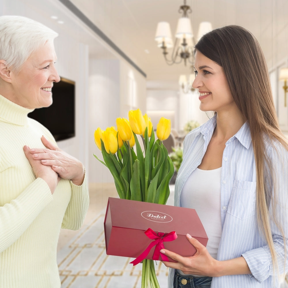 These sweet and creamy pumpkin cookies are joined by moist raspberry cake in a burst of fruity flavor, chunky chocolate chip cookies, and buttery soft rugelach for a delightful holiday gift basket. Dulcet’s has come through again with a fabulous gift!